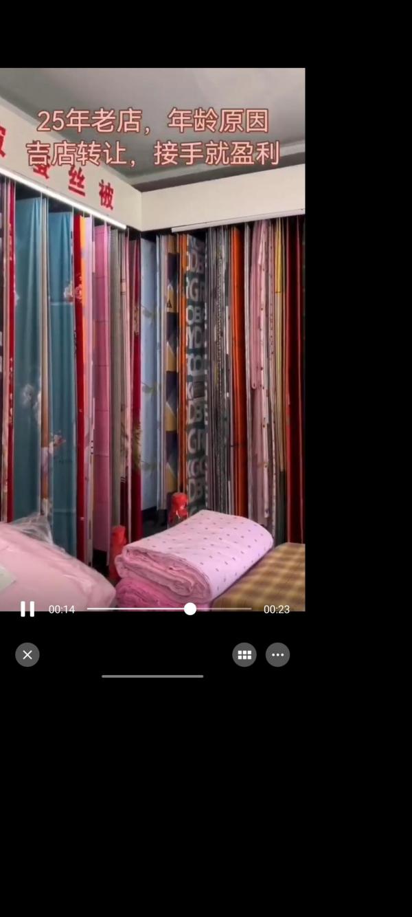 本店诚信经营25年,积累了大量顾客,也算是本地的老品牌,现在因为年龄偏大,准备退休,吉店转让。店内设备齐全,一楼棉布卖场,二楼窗帘卖场和做被子,接手就能盈利,想创业的来,15169649145