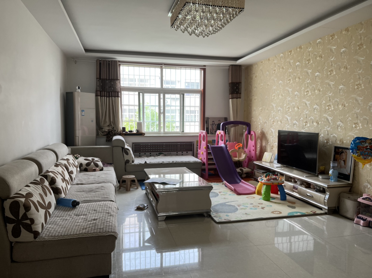 紧邻北城公园,车站旗城学校,3楼117平,3室朝阳,精装修,带车库,位置好,非山,出让土地,过户费低,可按揭,看房方便。
