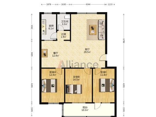 3室2厅1卫