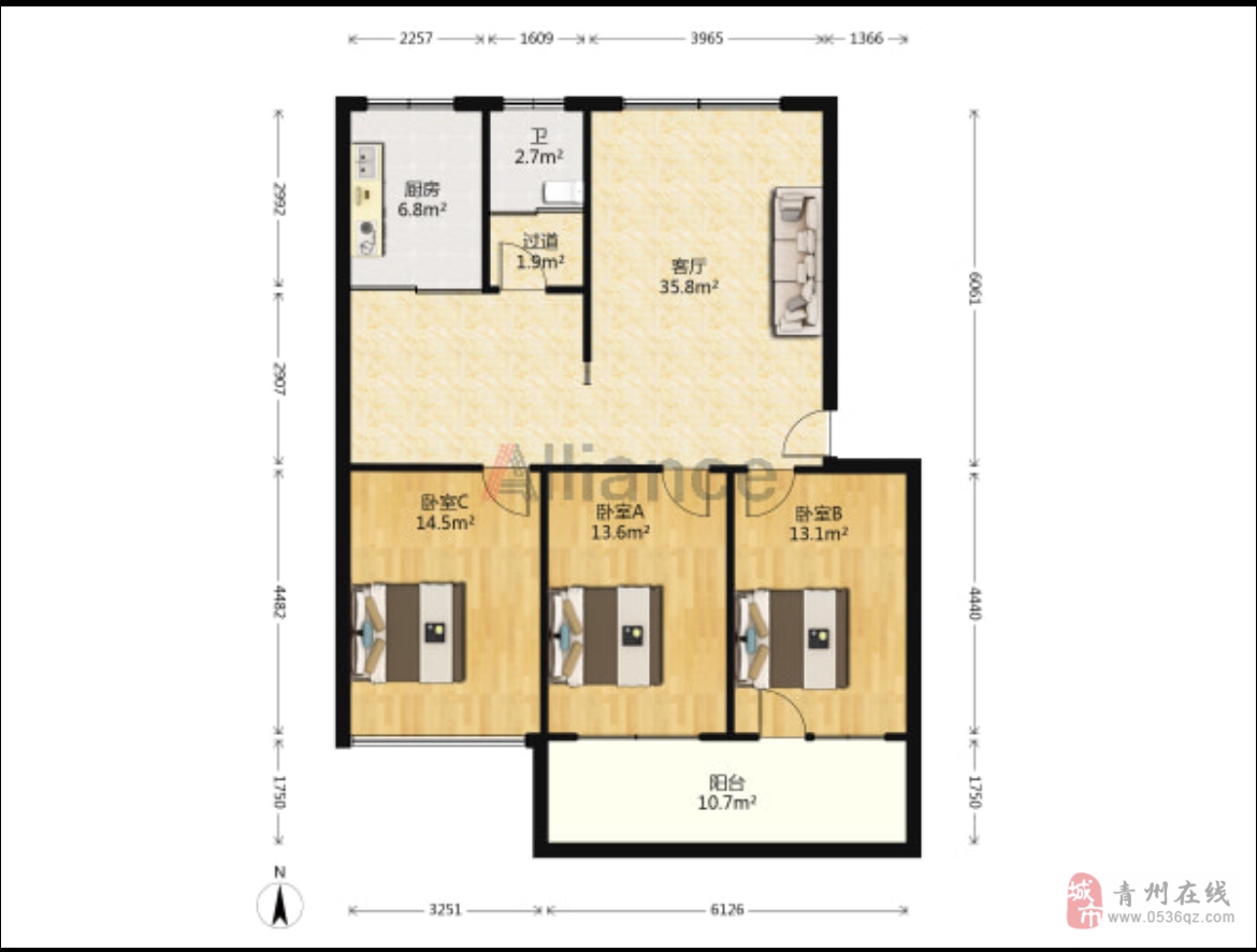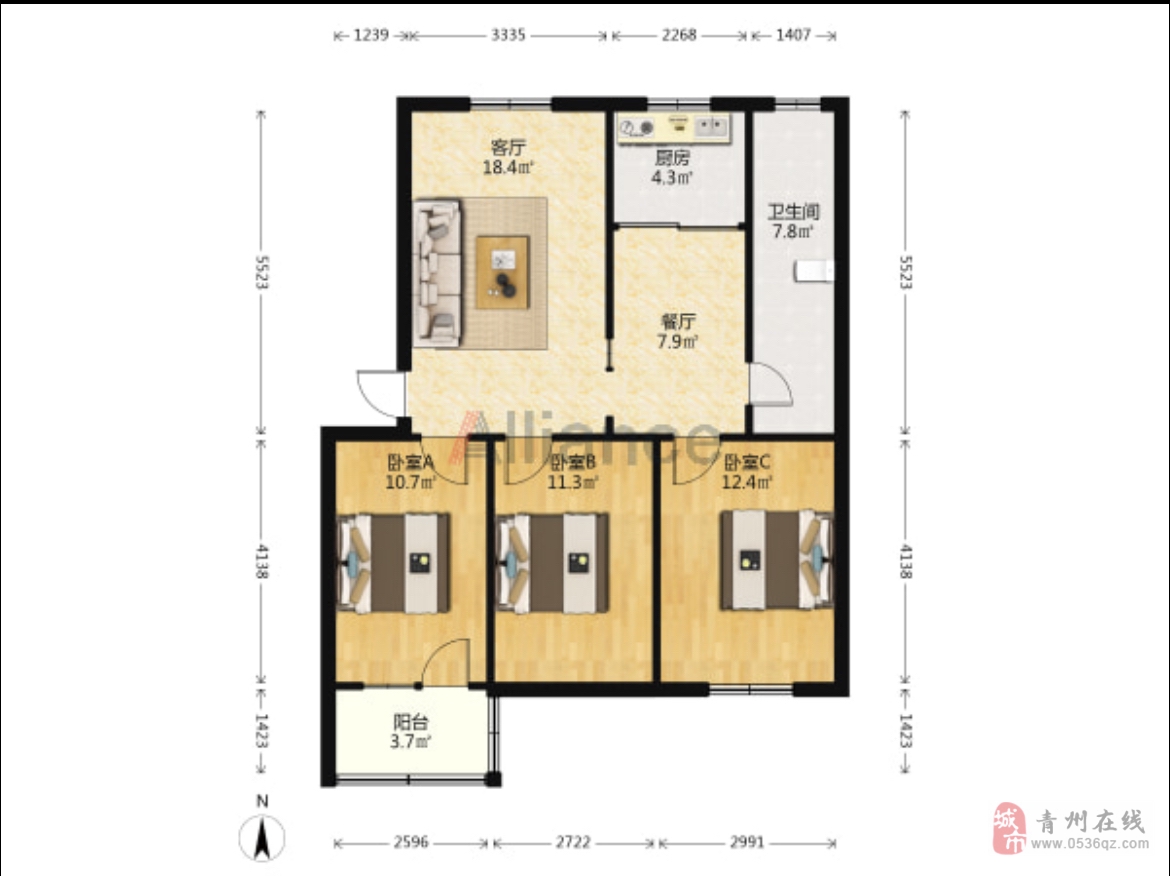 3室2厅1卫 | 133.00㎡ | 2015年建 | 12/18层
