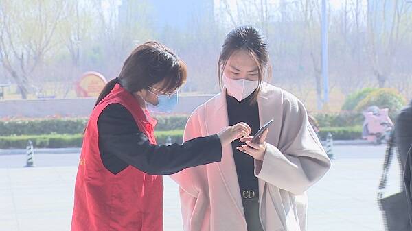 3月23日下午,在青州市政务服务中心楼前广场上,工作人员正快速核查办事群众的健康码、行程码、核酸检测等信息,确保办事群众快速有序通过,减少等候聚集风险。