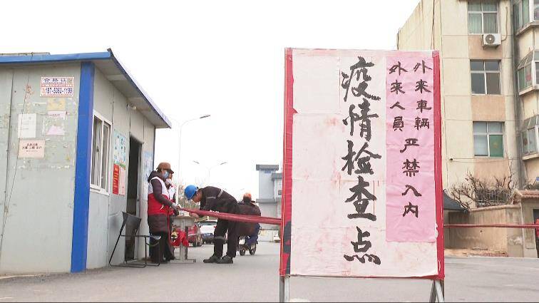 在青州市王母宫经济发展区姜家村防疫检测点,巾帼志愿者们正在叮嘱每一位出入的村民做好个人防护。