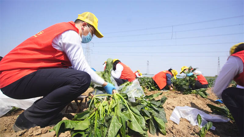 杜大姐看到许多志愿者和公益组织日夜奔忙在疫情防控一线,心里非常感动。农家人也想表达一份心意,没啥拿得出手的,思来想去,她决定将自家种植的菠菜捐赠给志愿者和公益组织,为疫情防控尽自己的一份力。爱心菠菜长势好,如何处理犯了难。近百亩菠菜,不仅收割费时费力,运输也是难题。得知杜大姐的爱心举动后,青州市农商行的志愿者们纷纷响应,来到田间地头,有车的出车,有力的出力,收割、打包,将爱心传递。