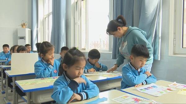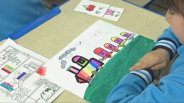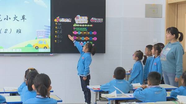 词语接龙小火车环节,一年级老师教学生绘制小火车,并制作词语卡片,与同学进行词语接龙PK。