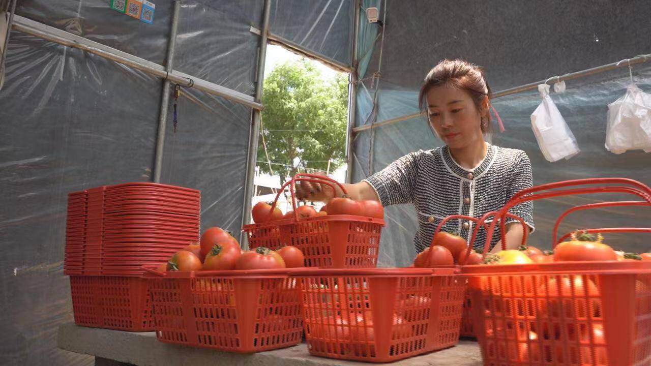 种植户潘女士种植的西红柿不同于其它西红柿,是一种新型水果“草莓西红柿”,“草莓西红柿”因底部有一小圈绿纹,带有青肩,看起来像草莓而得名,其汁水丰盈,酸甜可口,不但有西红柿味,其甜度和口感更是与众不同。