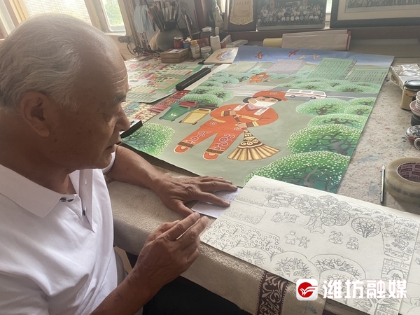 铅笔、橡皮,勾勒、上色……6月17日,在青州市博物馆的“关爱融合共享芳华”残疾人书画展现场,青州市王坟镇后黄马村农民画画家张子龙正一笔一划创作自己的新作品。谈起农民画,他满脸自豪:“以前光靠种地种粮,一年只有2000多元的收入,自从参加了农民画培训,画画技术越来越好,现在有了自己的公司,日子越过越红火。”