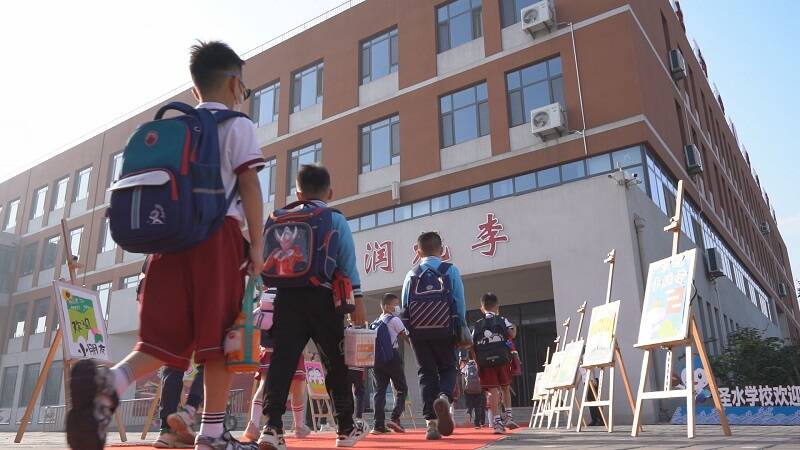 在圣水学校三年级的教室里,以劳动教育为主题的“开学第一课”主题班会正在进行,老师给大家播放爱劳动儿歌,同学们谈假期劳动收获,有的班级还进行劳动大比拼,同学们自己动手整理文具和课桌,在劳动中培养良好习惯。