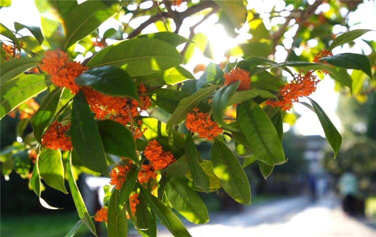 “一年秋意浓,十里桂花香。”仲秋时节,青州古城偶园丹桂飘香,引得众多游客纷纷前来赏花。据介绍,偶园内的6株明桂,其中丹桂5株、莲子桂1株,树龄均500余年,虽历经沧桑岁月,依旧枝繁叶茂,花盛开,香满园。丹桂花色较深,橙黄、橙红至朱红色。莲子桂花色乳黄色,花开清香怡人,素淡高雅。