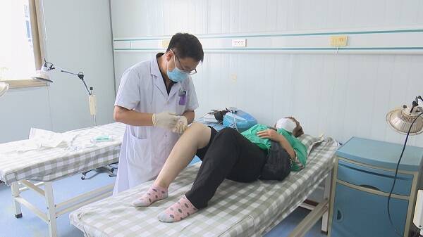 在潍坊青州市庙子卫生院中医康复科,医护人员正在给患者进行诊疗。治疗期间,医护人员时刻关注病人情况,提醒病人注意事项。
