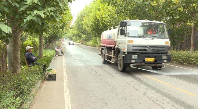 有令印介绍说,在弥河镇拥军路上洒水的时候,因为路上有许多卖桃的农户,为了防止呲到他们身上水,他也是十分注意,洒过去以后,他们身上也没呲上水,路面上打扫得挺干净,感觉心里挺舒心,也有一种成就感。