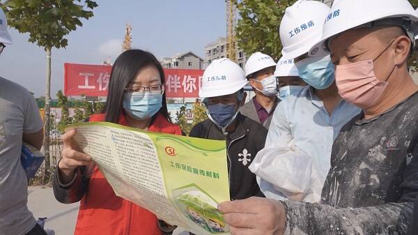 近日,潍坊青州市社会保险事业中心开展工伤预防宣传进工地活动。