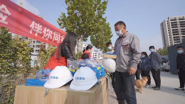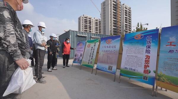 在建筑工地现场,工作人员通过设置宣传栏,发放宣传手册等形式,向工地负责人及务工人员宣传工伤预防相关知识,从建设项目参加工伤保险、申请工伤认定、劳动能力鉴定和享受工伤保险待遇的基本工作流程和管理规范等方面进行了细致全面的宣传讲解,并为建筑工人发放了劳保手套和安全帽等劳保用品。