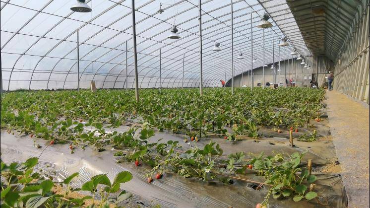 在青州市蔚然农业的草莓大棚里,成熟的草莓晶莹剔透,工作人员正穿梭其中采摘。受疫情影响,采摘游客减少,为提高销量,青州市蔚然农业主攻线上销售,将采摘下来的新鲜草莓进行包装后,直接配送到顾客手中。