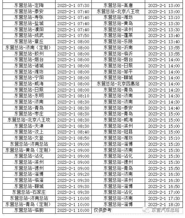 2月1日,东营汽车总站发往沾化的班车恢复运行,发车时间分别为9:00、11:00、15:30、17:00,途经北岭、后刑、南洼、裴家、车王,终点站沾化。