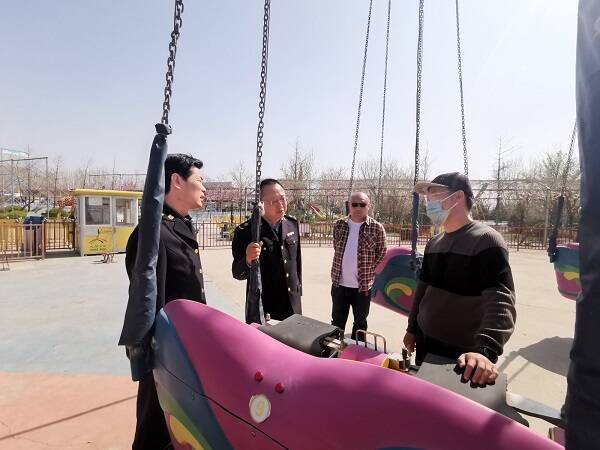 线上动态监督和线下实地检查相结合,全面开展旅游景区、游乐场所特种设备监督检查。重点检查作业人员持证上岗,安全带、安全压杆等保护装置以及座舱舱门锁紧装置是否有效,每日试运行情况和例行安全检查,应急预案制定及演练等情况。目前,11个景区已检查完毕,发现作业人员未持证上岗问题2处,已下达指令书责令限期整改。同时,全面排查各类庙会及集市、广场等场所是否存在流动式大型游乐设施,严查应登未登、超期未检等情况。