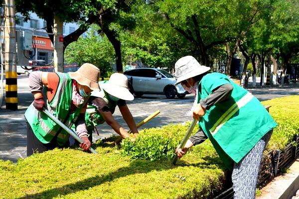 深化细化量化日常工作,靓出城市“最美颜值”。在做好日常修剪、绿地清理和环卫保洁的基础上,持续提升精细化管理品质。根据植物根系生长状况,通过“过渡沟槽落土”“更新治土”方式,在路沿石内侧整理绿化带过渡槽,防止浇水或下雨时土壤外溢。按照应补尽补的原则治理裸露土地,栽植扶芳藤球替换衰老模纹灌木,对破坏程度严重且补植多次仍遭到踩踏的绿化带铺装嵌草砖,全力打造精致美观的道路风景线。