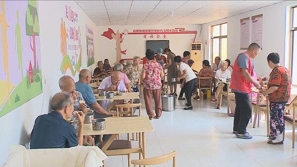 上午10点,村中心的幸福食堂大院里热闹了起来,老人们围坐在一起话家常,每天还有免费午饭提供。