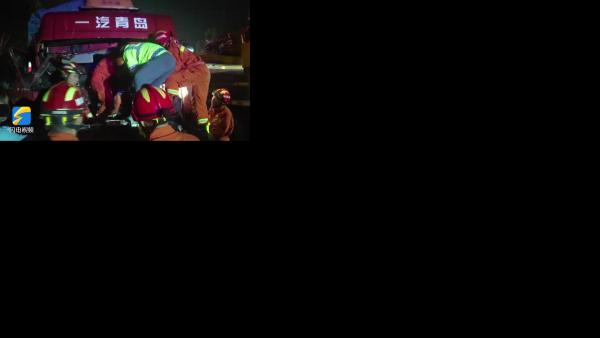 深夜货车追尾 青州消防紧急救援